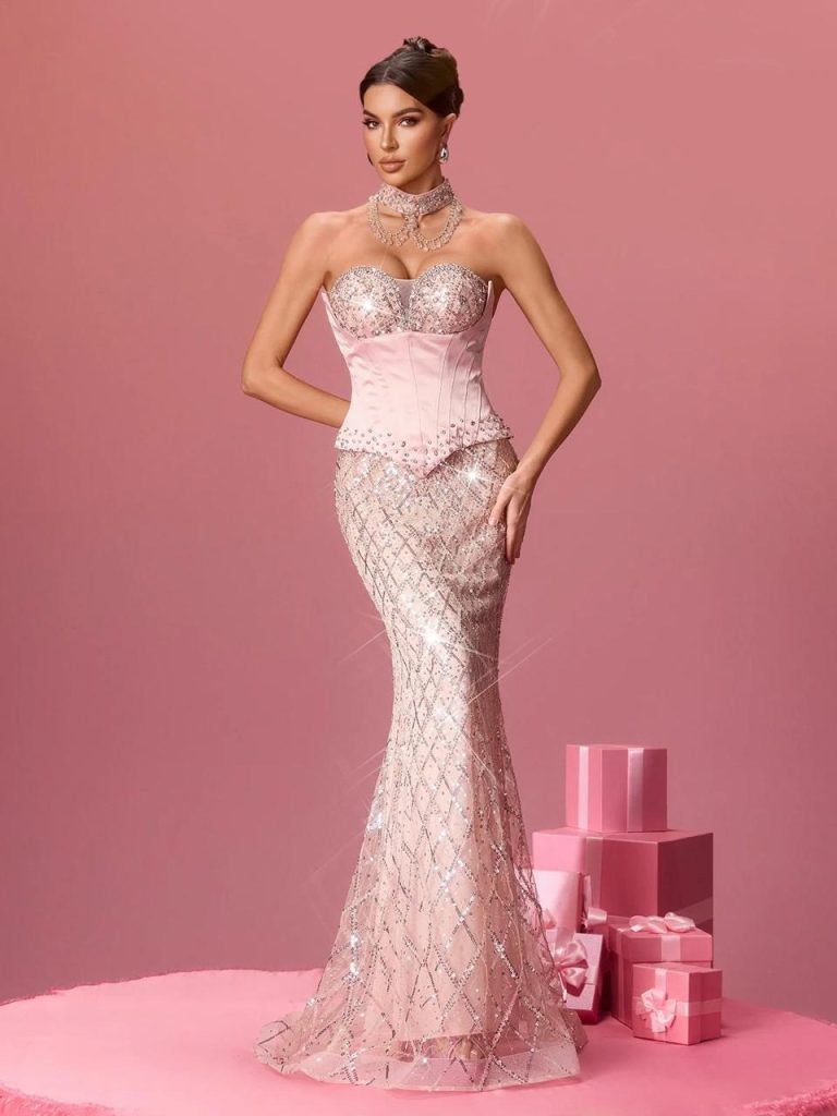Crystal Rain Dress in Ruby Rainfall (Red)