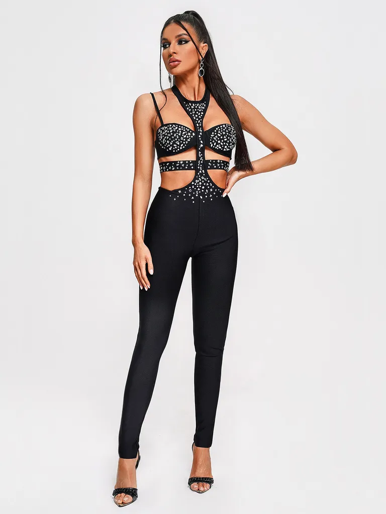 Black Diamante Bandage Jumpsuit