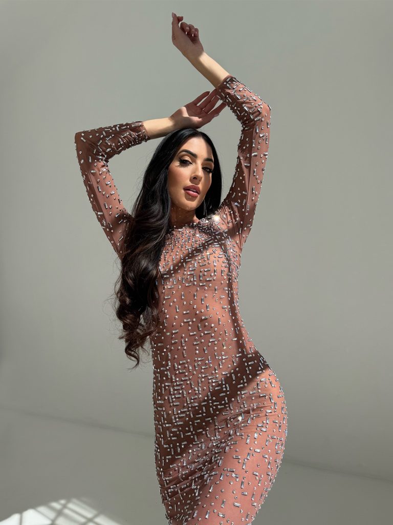 This dress understands that sometimes the boldest move is to show up looking like you already won. Because when you’re wearing Crystal Nude Ambition, you’re not hoping for your moment – you’re creating it, one shimmer at a time.